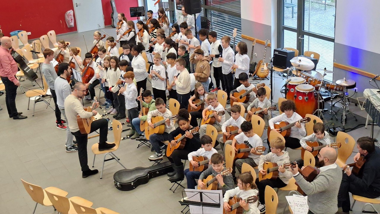 Qualifizierte Kolleginnen und Kollegen der Clara-Schumann-Musikschule unterrichten 2x wöchentlich in enger Absprache mit den Lehrerinnen und Lehrern unserer Schule. Der Instrumentalunterricht ist fester Bestandteil des Stundenplans.